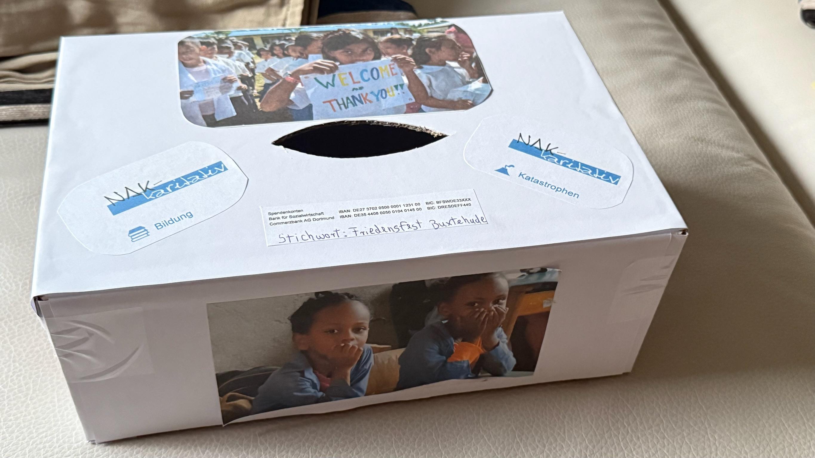 Das Team von NAK-karitativ e.V. bedankte sich mit eine Spendenurkunde für die Unterstützung und das Engagement im Rahmen des Friedensfestes der Neuapostolischen Gemeinde Buxtehude.