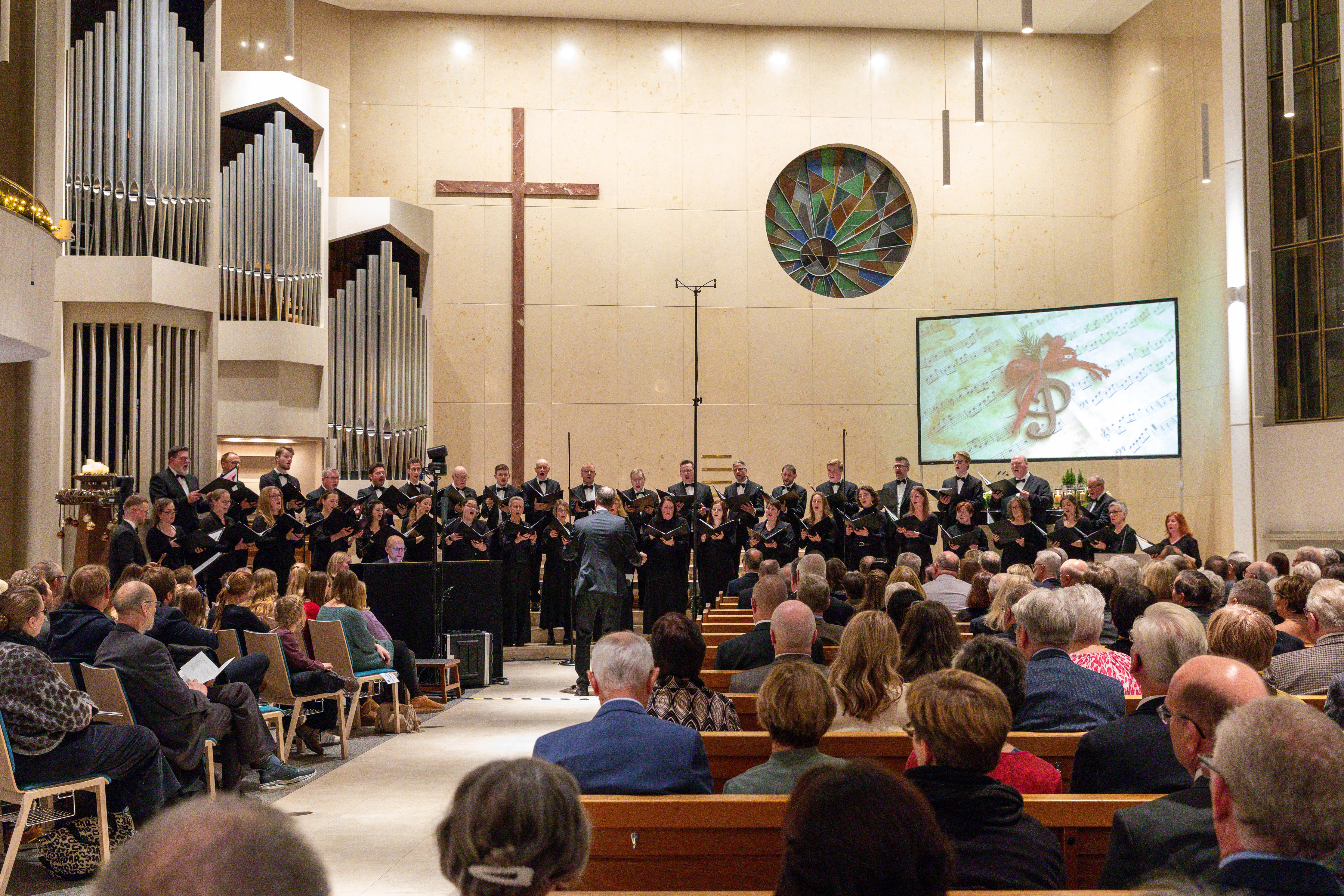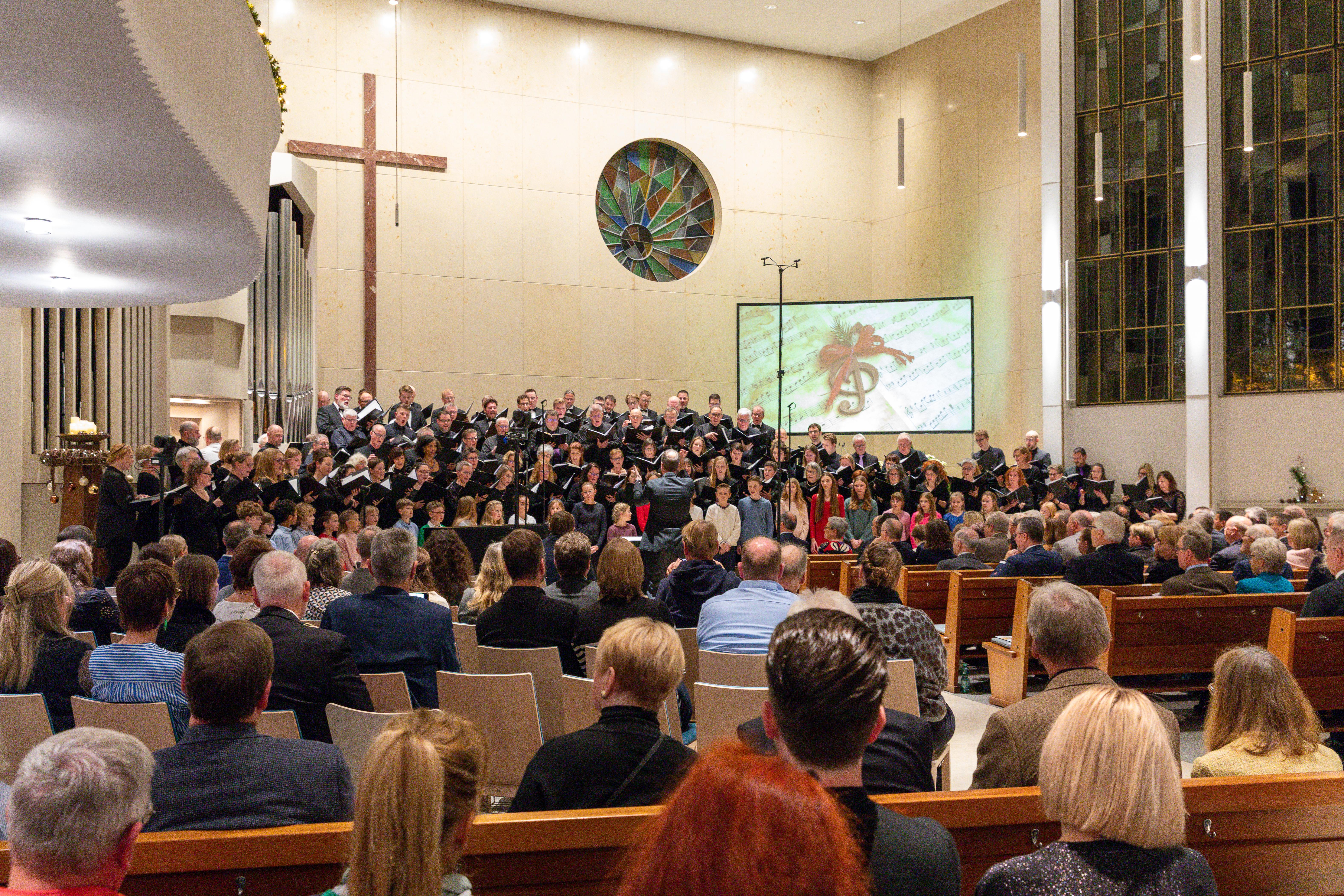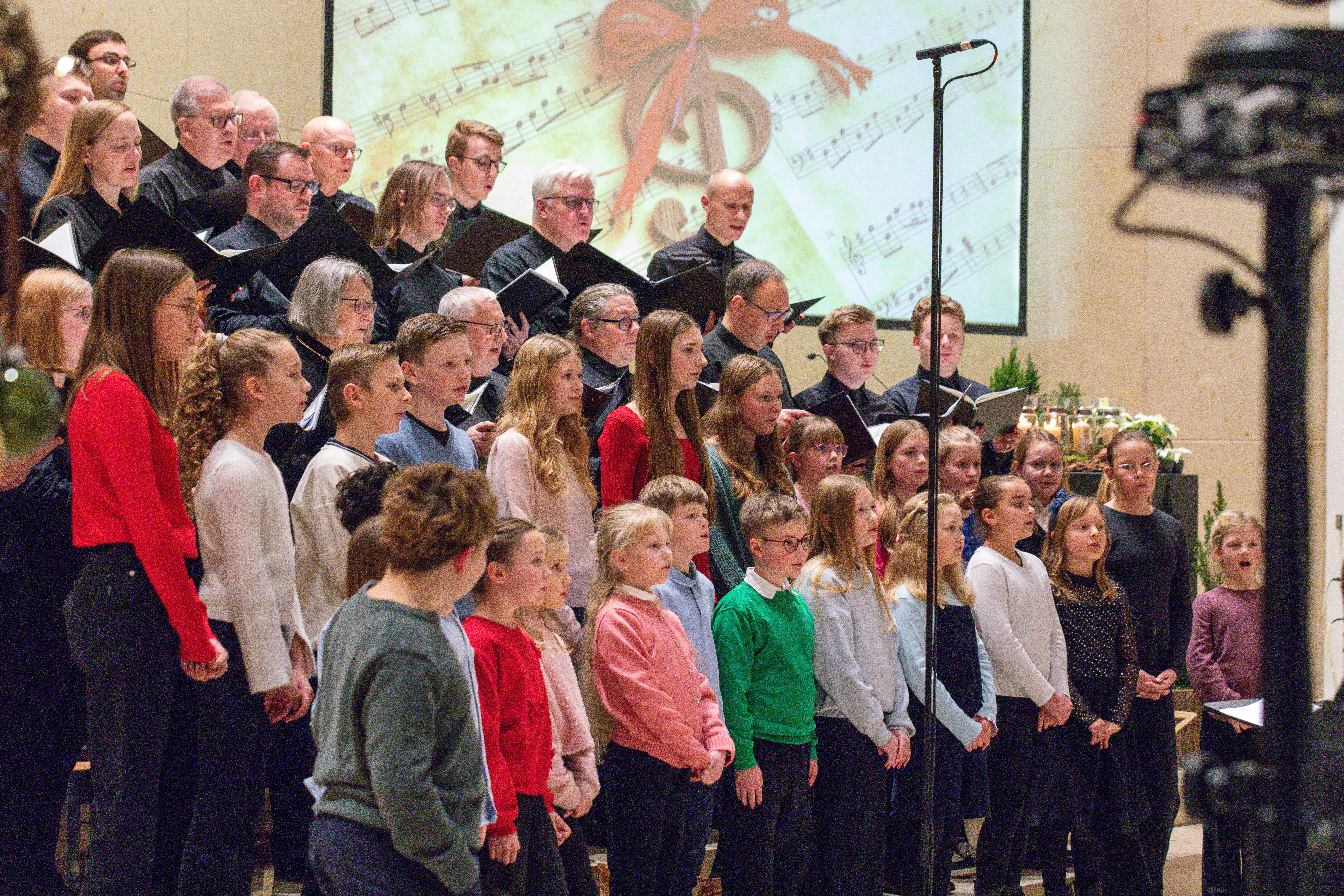Mit dem Kinderprojektchor geht die musikalische Reise weiter nach Irland und Island. Für das norwegische Weihnachtslied „Julenatt“ („Heil’ge Nacht“) kommt der Kammerchor Gloria Dei dazu. Dieser setzte das Programm mit den traditionellen Weihnachtsliedern „Herbei, o ihr Gläub’gen“ aus Deutschland, „Deck the Hall“ aus Wales und „Jul, jul, strålande jul“ aus Schweden fort.