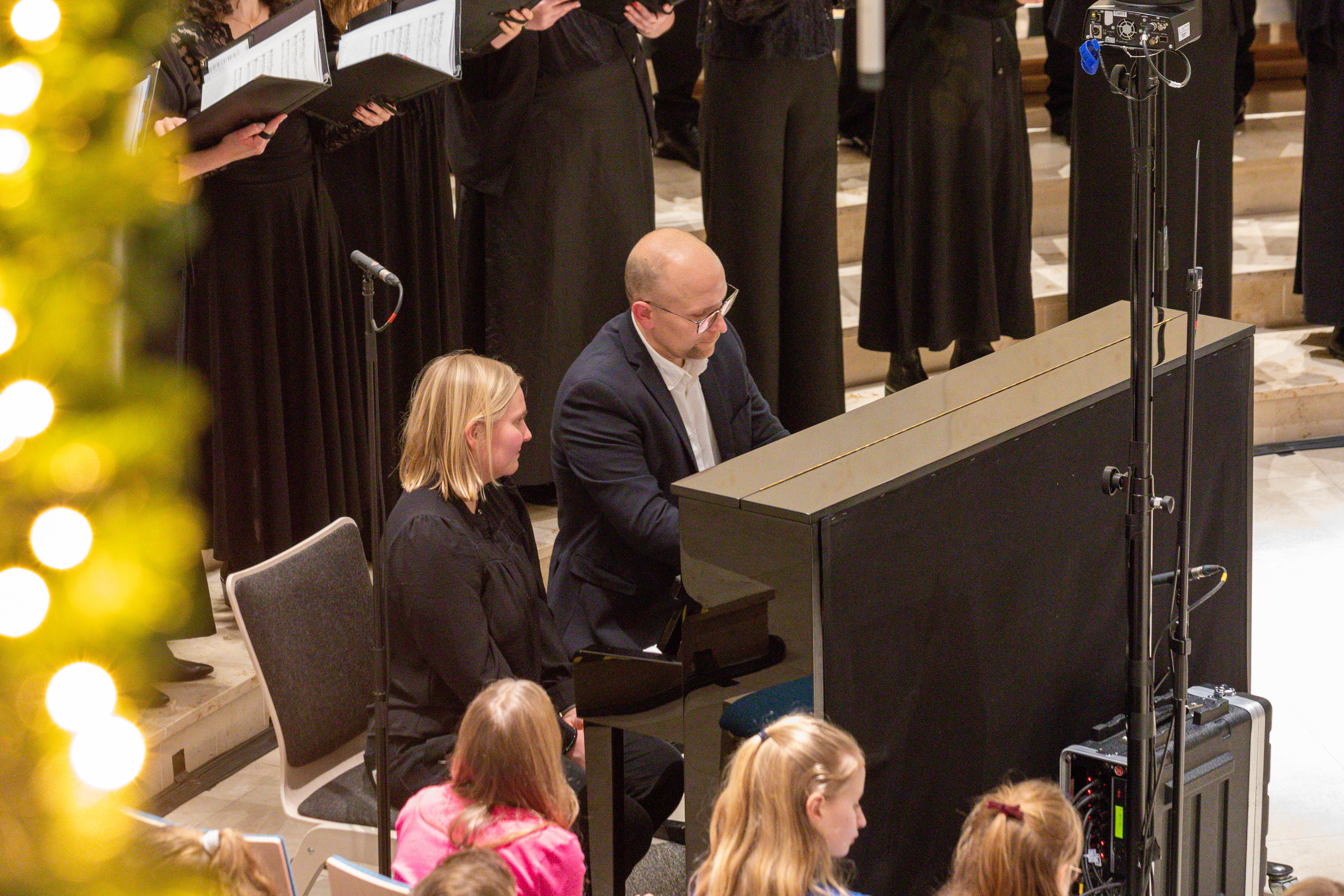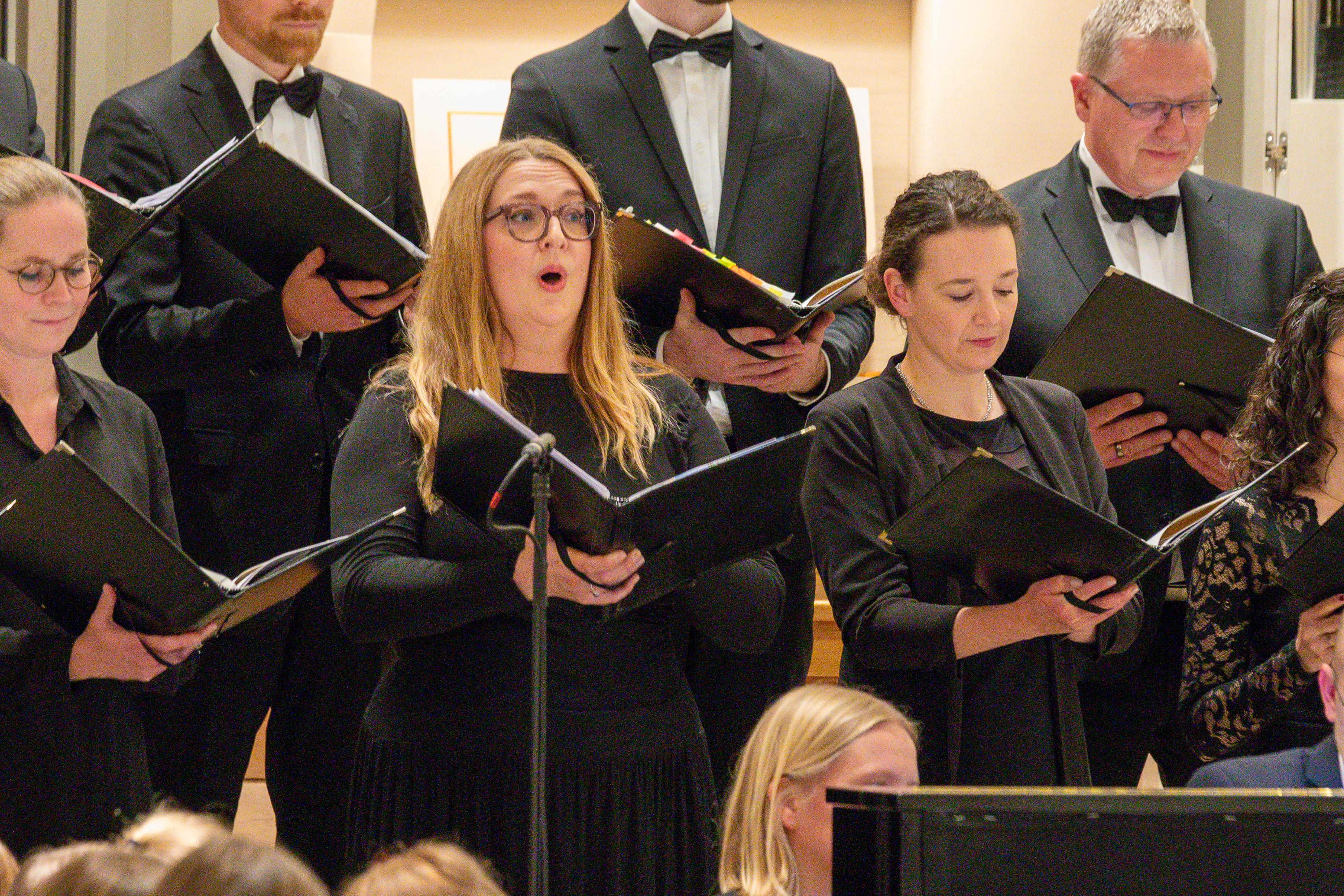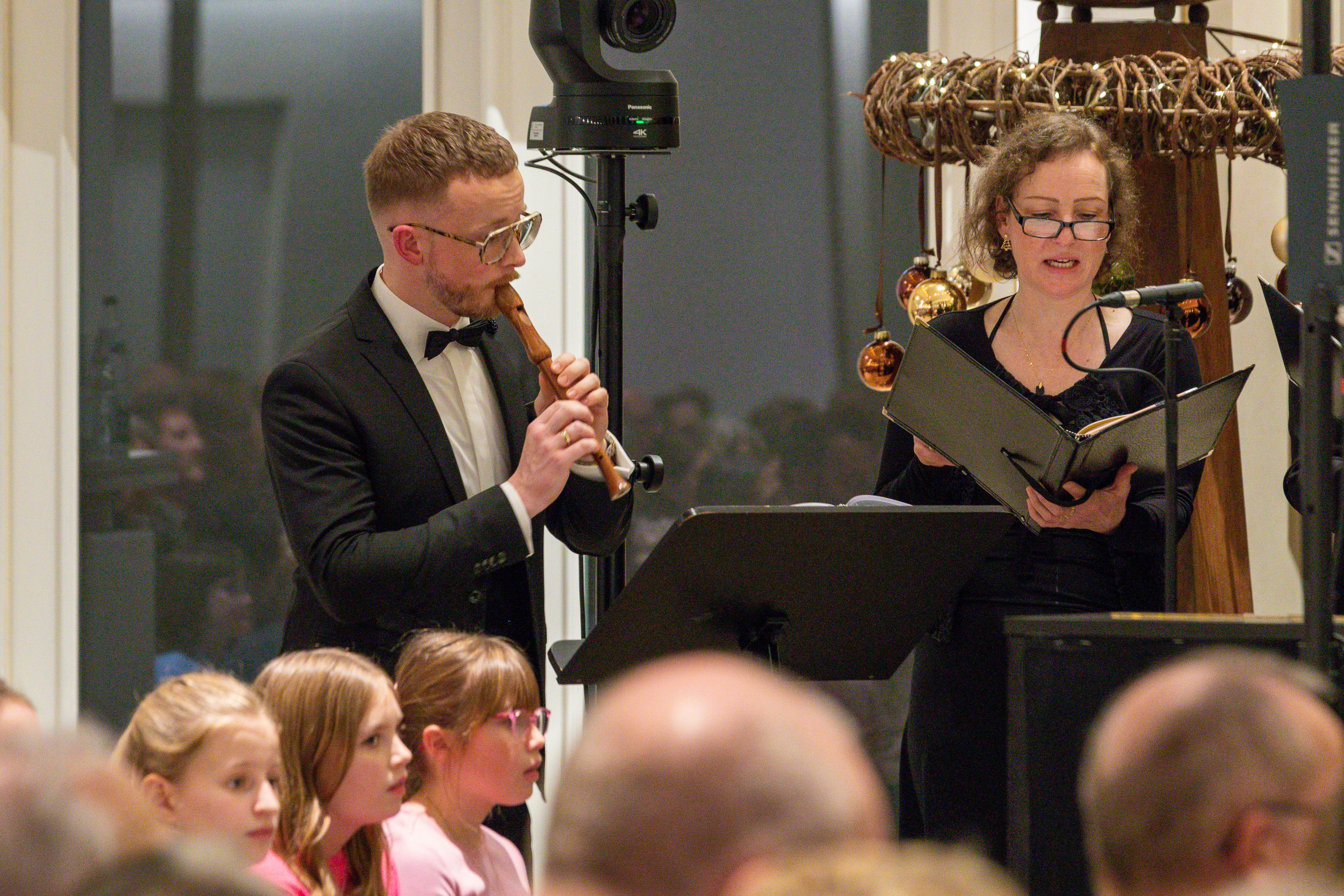 Mit dem Kinderprojektchor geht die musikalische Reise weiter nach Irland und Island. Für das norwegische Weihnachtslied „Julenatt“ („Heil’ge Nacht“) kommt der Kammerchor Gloria Dei dazu. Dieser setzte das Programm mit den traditionellen Weihnachtsliedern „Herbei, o ihr Gläub’gen“ aus Deutschland, „Deck the Hall“ aus Wales und „Jul, jul, strålande jul“ aus Schweden fort.